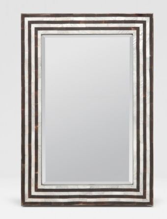 Glamorous! Alternating rows of reflective MOP and rich horn line our Chelsey mirror. A mirror that makes everything seem more beautiful!