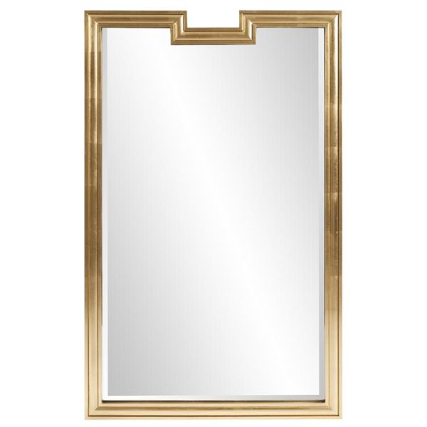 The Danube Mirror is a gorgeous piece with an Art Deco flair. It features a simple rectangular wood frame with a notch cut out in the top. The entire piece is then finished in a bright gold finish that accentuates the pure brilliance of this piece. The simplicity of this piece allows it to fit right in to any style from Contemporary to Traditional.