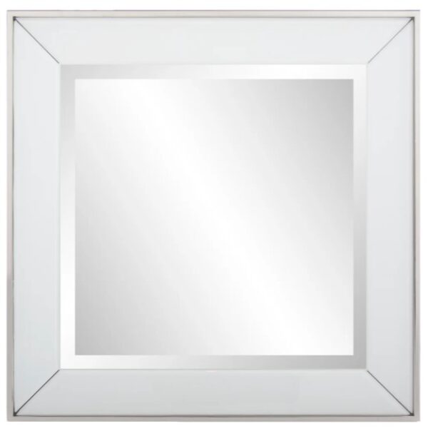 Our traditionalDevon mirror now has a smaller size that can be used in multiples for that dramatic room statement wall or as a single mirror for that special area that needs special touch. Features of thismirror are a polish stainless steel frame surrounding a white beveled mirrored front face frame, and a clear beveled center mirror.
