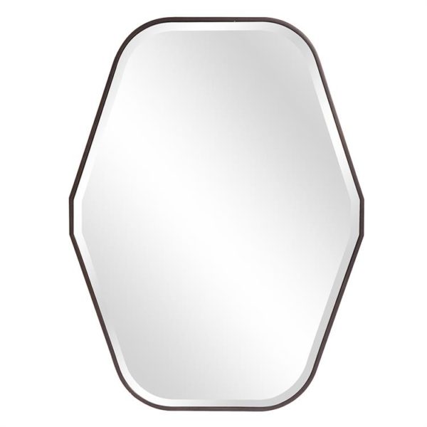 Our Delmar Mirror features a stylized octagonal mirror trimmed in a thin wood frame. The simplicity of the frame really lets the unique shape of the piece shine. It is finished in a dark espresso brown stain. “D” Rings are attached to the back of the mirror making it ready to hang right out of the box! This mirror can only be hung vertically. A simple bevel on the mirror adds to its style and beauty.
