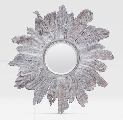 Mangrove wood roots are hand pieced together to create the organically dramatic silhouette of the Floris. Each mirror is unique with natural variance, but every one offers lots of movement with the flame-like shape of its frame. The antiqued gold finish softens the flair, while the whitewashed version offers a more subdued, rustic style