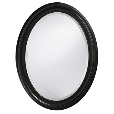 The George Mirror features a matte black lacquer finish. The oval frame is made from wood and is accented with grooves for added depth and character. For more added detail the mirror features a one inch bevel. Its Transitional style makes this mirror a favorite for bringing some flair to your decor. This simple yet stunning piece would be a great addition to any room. It is a perfect focal point for an entryway, bathroom, bedroom or any room in your home. D-rings are affixed to the back of the mirror so it is ready to hang right out of the box in either a horizontal or vertical orientation!