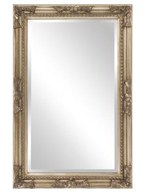 The Queen Ann Mirror features an antique silver finish. The rectangular frame is made from wood and is accented with a beaded textured inset and decorative adornments on each side of the frame. For more added detail the mirror features a one inch bevel. Its Traditional style makes this mirror a favorite for bringing some flair to your decor. This simple yet stunning piece would be a great addition to any room. It is a perfect focal point for an entryway, bathroom, bedroom or any room in your home. D-rings are affixed to the back of the mirror so it is ready to hang right out of the box in either a horizontal or vertical orientation! Also available in an oval shape.
