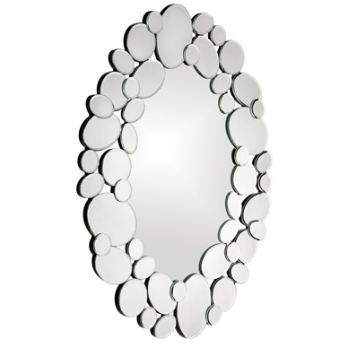 Our Stratus Mirror features overlapping circular mirrored disks that surround the oval frame. It is a perfect focal point for an entryway, bathroom, bedroom or any room in your home. D-rings are affixed to the back of the mirror so it is ready to hang right out of the box! The mirrored disks on this piece has a bevel adding to its beauty and style. The Stratus Mirror can be hung vertically or horizontally.