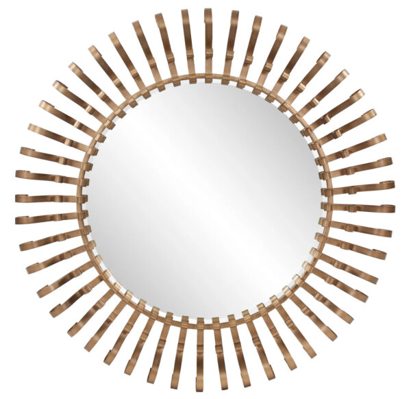 The Casimir mirror features a hand crafted iron frame. The beauty of this frame comes from the detailed workmanship that was used to create each of the curved pieces that surround this mirror. Finished is a deep golden tone, the Casimir is ready to take center stage in your home.